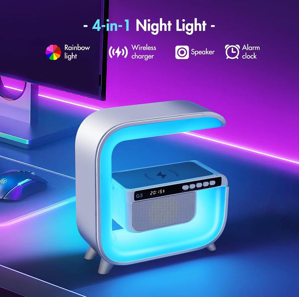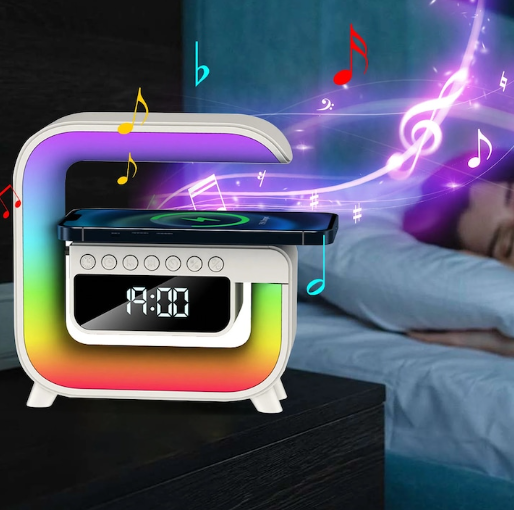Lampă Inteligentă cu Difuzor oferă iluminare adaptabilă, încărcare wireless și sunet de calitate, totul într-un design elegant și modern. Alții nu pot oferi aceeași versatilitate și stil.